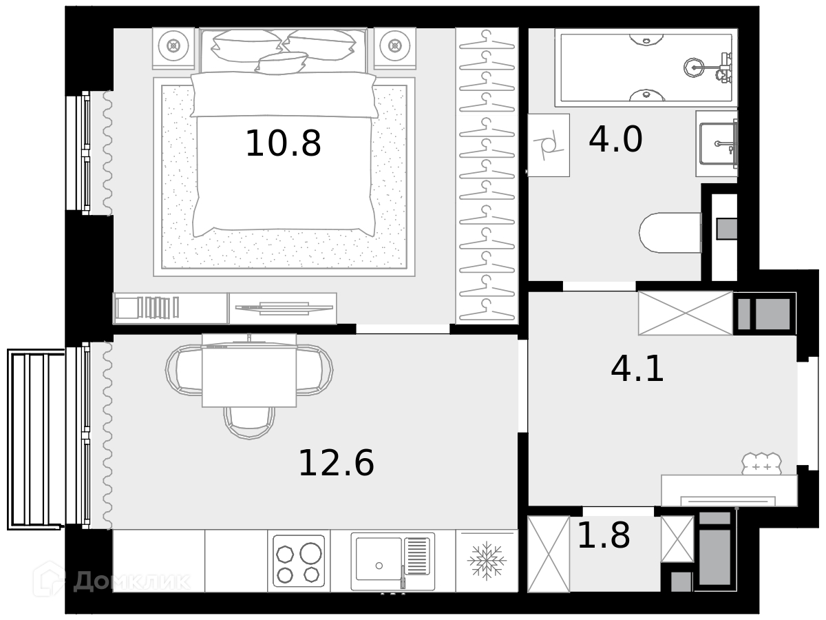 22.7 - 43.6 м²