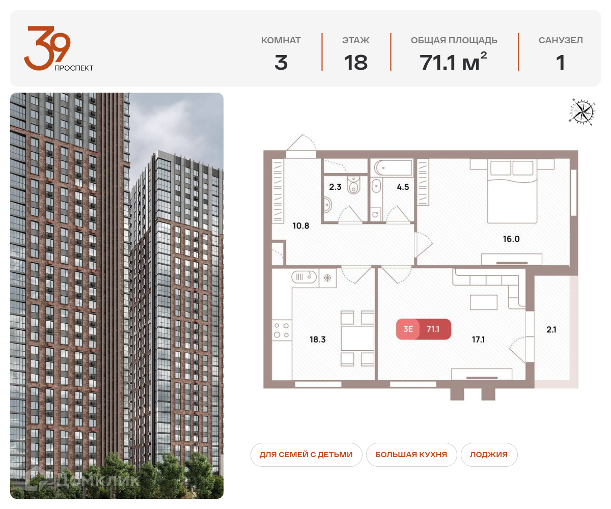 Площади квартир