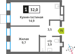 21.3 - 61.6 м²