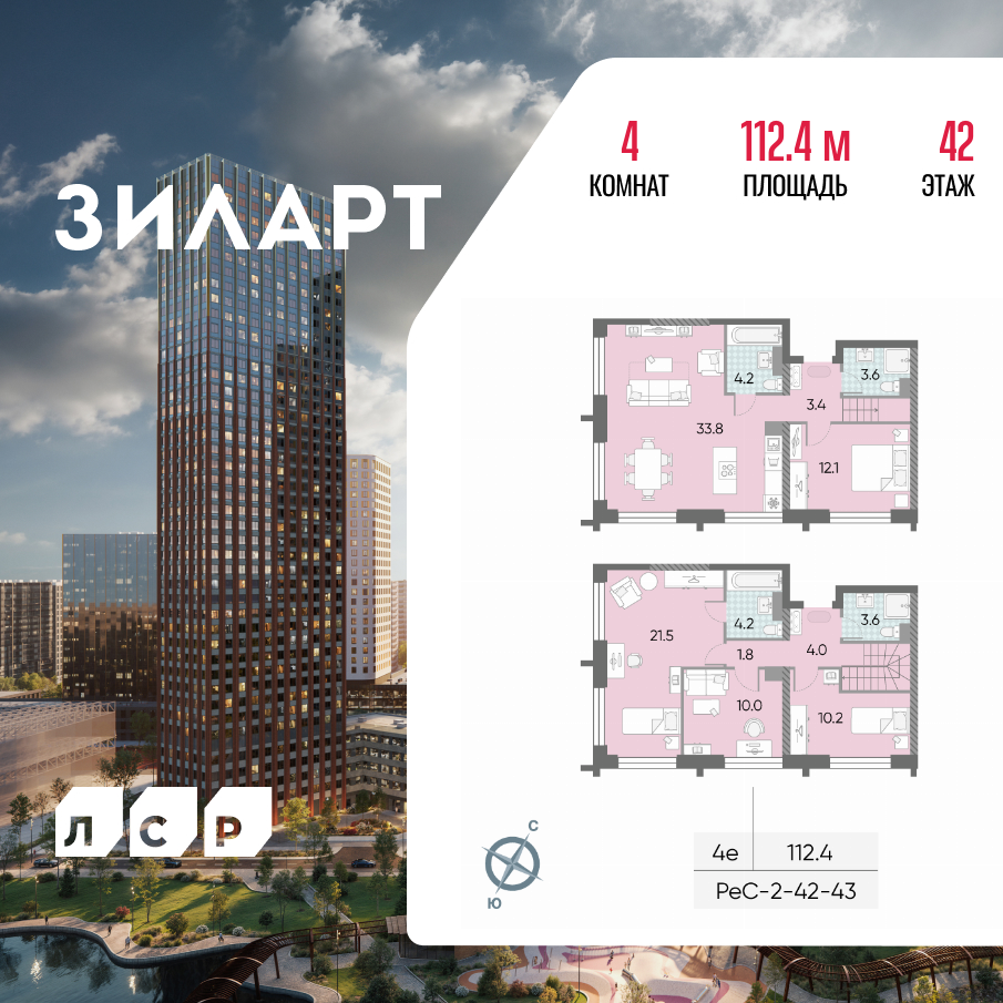 В продаже 4-комнатная квартира в востребованном жилом комплексе "ЖК "Зиларт"" 🏢. Квартира расположена на -м этаже 45-этажного дома. Отличный вариант для инвестиций.