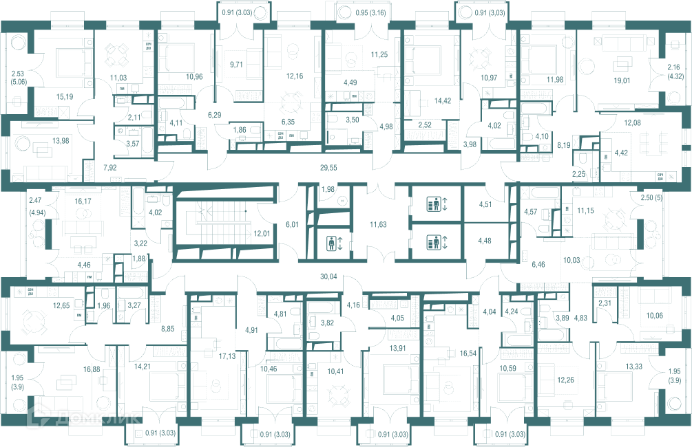 Площади квартир