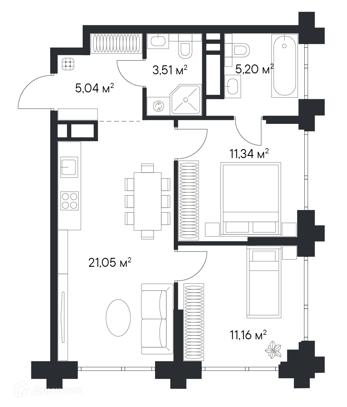 - ✅ Кухня: 20.86 м² — идеальна для семейных ужинов.