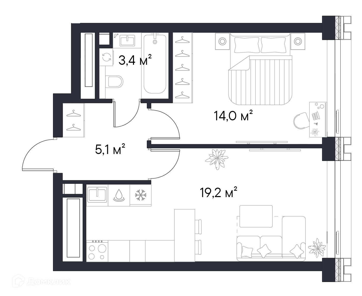 - ✅ Кухня: 19.2 м² — место для кулинарных шедевров.