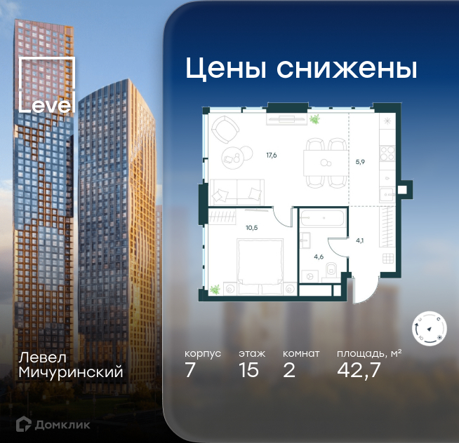 Доступна к покупке 2-комнатная квартира в востребованном жилом комплексе "ЖК "Level Мичуринский" (Левел Мичуринский)" 🏢. Квартира расположена на 15-м этаже 37-этажного дома. Прекрасный выбор для семьи.