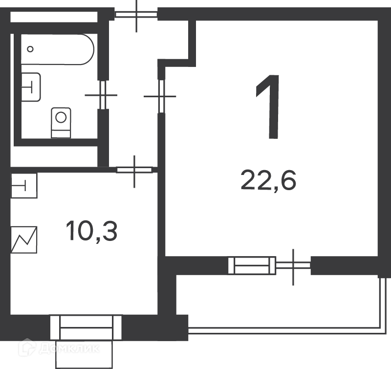 - Жилая площадь: 22.6 м²
