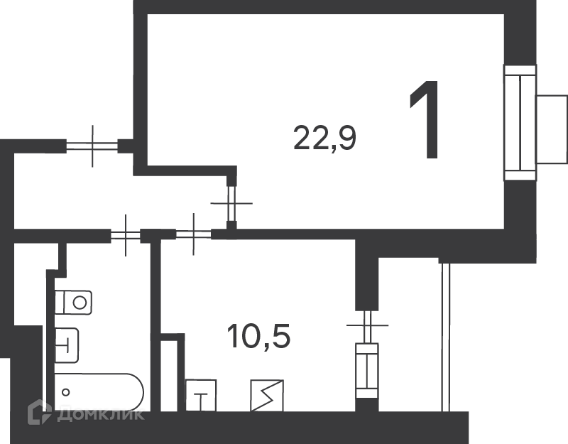 - Жилая площадь: 22.9 м²