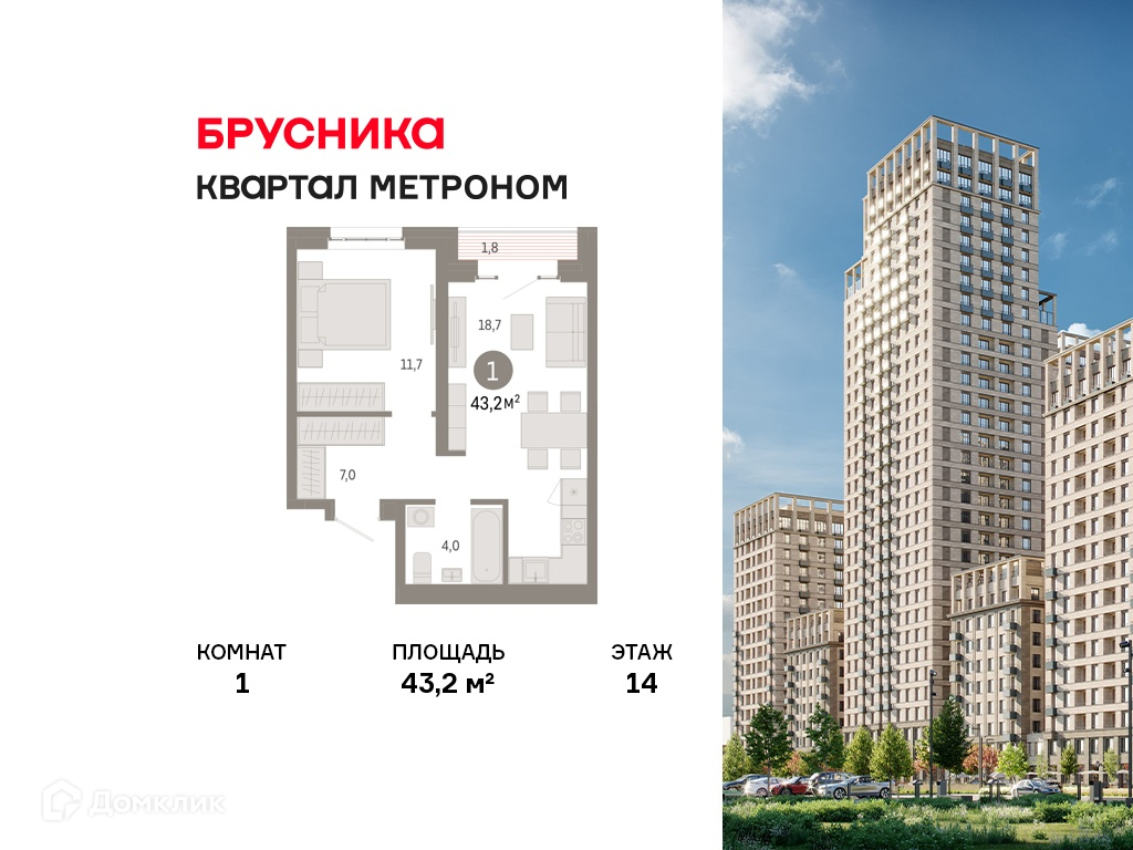 - Количество комнат: 1-комнатная квартира