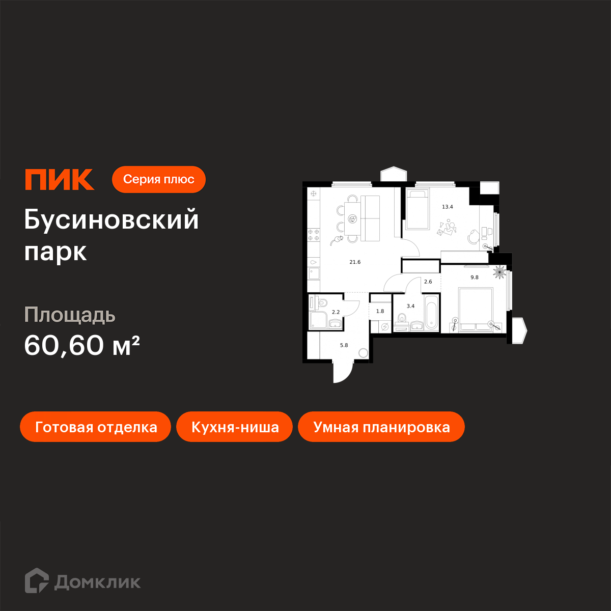 Проект принадлежит «Серии плюс». В «Серию плюс» входят жилые кварталы с повышенным уровнем комфорта и уникальной архитектурой. У квартир умные планировки: можно выбрать квартиру с мастер-спальней, где есть отдельная ванная комната, с просторной кухней-гостиной, с двумя санузлами, с гардеробной или постирочной. В светлых уютных лобби с дизайнерской отделкой предусмотрены колясочная и гостевой санузел. «Бусиновский парк» расположен на севере Москвы — в районе Западное Дегунино, в 20 минутах пешком от метро «Ховрино». Яркий и современный образ жилого квартала создают башни-доминанты — у каждой из них свой уникальный фасад, разработанный российскими архитектурными бюро. Проектом предусмотрены входы на уровне земли, без ступеней, порогов и пандусов — так удобнее и безопаснее. У подъездов будет два выхода: на улицу и во двор-парк. В наших дворах мы установим столы и лавочки со встроенными зарядными устройствами. Не нужно будет возвращаться домой, чтобы зарядить смартфон или ноутбук: можно весь день работать на свежем воздухе В проекте появится масштабное пространство площадью 4 Га — MultiHub «Атлас». Для юных жителей появится большая игровая площадка с горными хребтами для лазания, ручьём золотоискателей, лесным фортом и песочной зоной для малышей. Дети смогут придумывать здесь бесчисленное количество игр независимо от своего возраста. Взрослые смогут отдохнуть в дождевом саду — это удивительное место, где после дождя появляются маленькие живописные озерца. Для спорта — уличные тренажёры, площадки для командных игр, столы для пинг-понга и шахмат. Владельцы собак оценят место для прогулок с питомцем. А специально для подростков мы спроектировали уникальное пространство для отдыха — памп-трек для катания, большой навес, амфитеатр и сетки для отдыха, где они смогут собираться вместе в любую погоду. В лобби «Бусиновского парка» будет удобная зона ожидания, где можно встретить друзей, курьера или дождаться такси, а также гостевая туалетная комната со столиком для пеленания. На территории проекта предусмотрены двухуровневый подземный и наземный паркинги. В паркингах установлены надёжные системы вентиляции, пожаротушения и круглосуточного видеонаблюдения. А ещё для наших паркингов мы разработали систему навигации, которая помогает быстро найти автомобиль. На подземных этажах «Бусиновского парка» предусмотрены вместительные кладовые. В них жители проекта смогут хранить сезонные и габаритные вещи, которые занимают много места в квартире. В корпусе 1.4 появится общественная терраса на 30-м этаже. Доступ сюда есть только у жителей, поэтому вы не встретите в этом пространстве посторонних людей. Здесь можно заниматься спортом, отдохнуть за чтением книги или создать собственный сад. А ещё отсюда открываются красивые виды на город. В «Бусиновском парке» предусмотрены квартиры с панорамным остеклением, различными балконами, эркерами, угловыми окнами и большим количеством окон — до пяти в одной комнате. В таких квартирах широкий угол обзора: можно пить кофе, наблюдая за жизнью на улице и наслаждаясь ощущением простора. Ещё больше комфорта придаст мягкий солнечный свет, который равномерно осветит всю квартиру. На верхних этажах корпуса 1.4 будут квартиры с большими террасами площадью от 29 до 55 м².В продаже квартиры с умными, комфортн