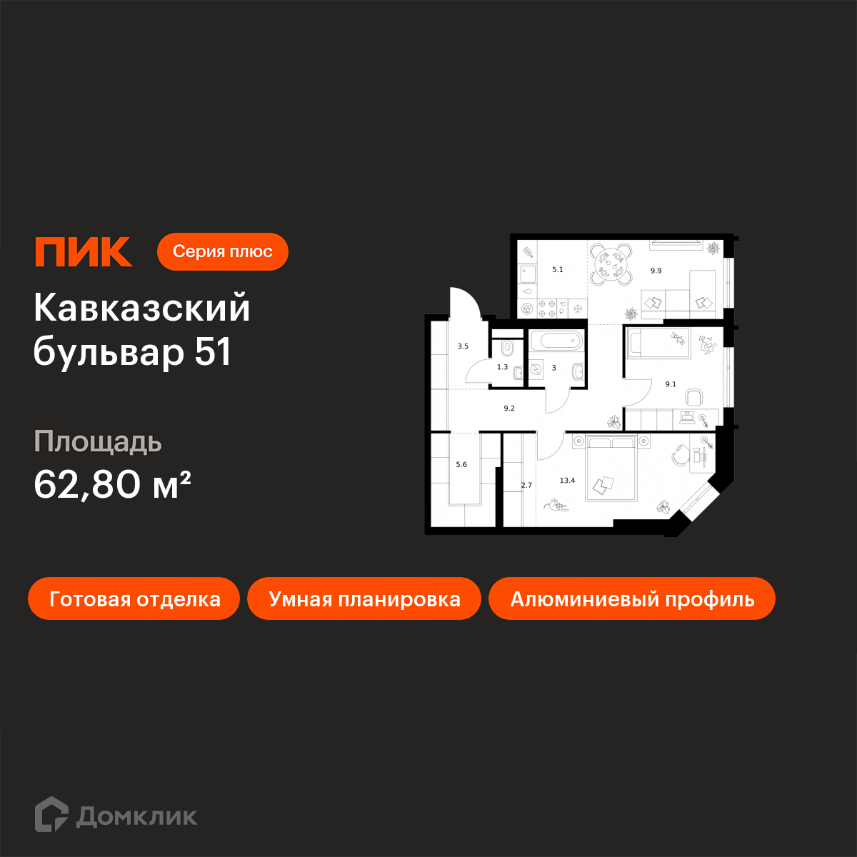 В продаже 2-комнатная квартира в новом жилом комплексе "ЖК Кавказский бульвар 51" 🏢. Квартира расположена на -м этаже 33-этажного дома. Отличный вариант для семьи.