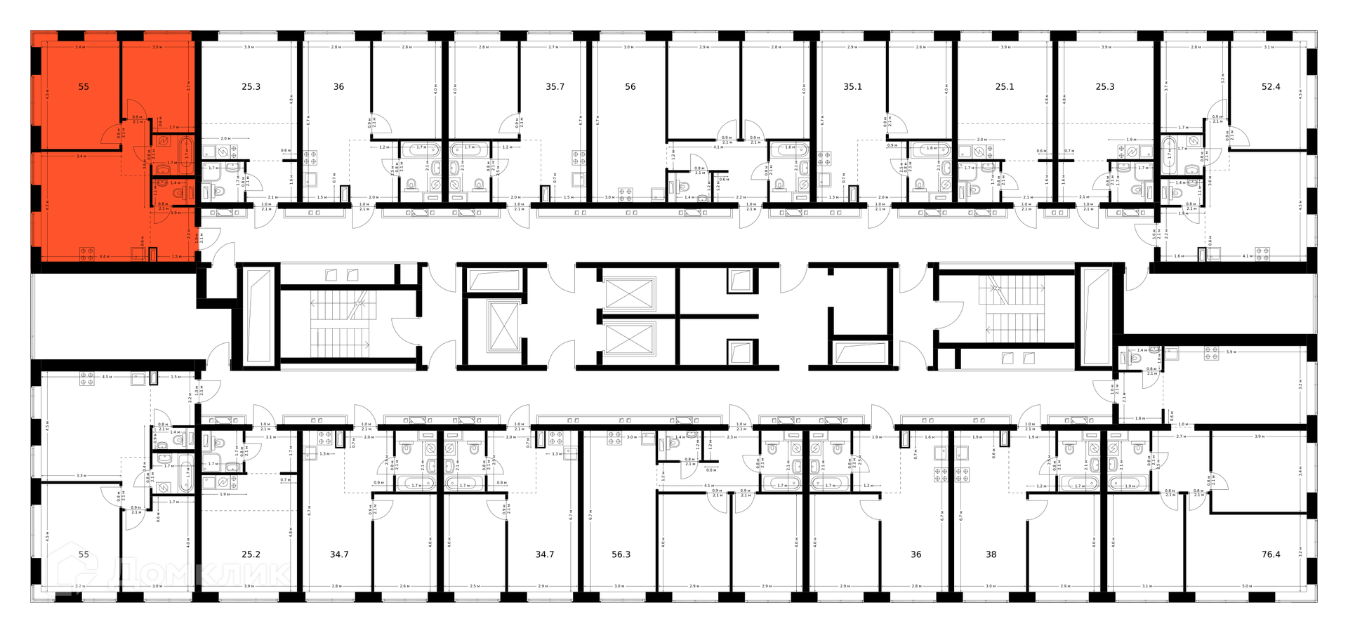 Площади квартир