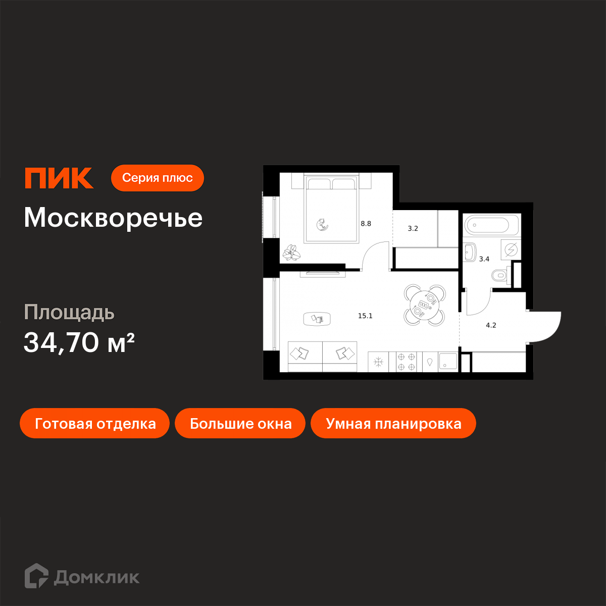 Архитектурный проект разработан российским бюро Saga. Он представляет собой живую архитектурную среду, вдохновленную атмосферой исторических центров и разнообразием стилей. При этом каждый элемент разработан с вниманием к деталям и функциональности. Первая очередь, состоящая из четырех корпусов (1.1 - 1.4), запланирована к сдаче уже в 2027 году. Её общая площадь составит 103,3 тыс. м². Рядом с ней также появятся социальные объекты: образовательный центр, дошкольного и школьного образования на 3000 мест, включающий школу на 2500 мест, детские сады на 500 мест. Также на территории жилого квартала откроются два уютных детских сада, каждый на 350 мест и школа на 1350 мест. Кроме того, в «Москворечье» будет построена поликлиника, которую ежедневно смогут посещать до 450 пациентов. Внутри будет установлено современное оборудование для диагностики и профилактики. Также рядом будут созданы общественные пространства, технопарк, который обеспечит район новыми рабочими местами, досуговый центр, спортивные объекты и торговый центр. В проекте «Москворечье» будет представлен широкий выбор умных планировок для самых разных сценариев жизни. Площадь квартир варьируется от 18,8 до 85,4 м². В проекте можно выбрать квартиру с необычным балконом, панорамным остеклением, угловыми окнами, эркерами, а также мастер-спальнями. Все квартиры сдаются с готовой отделкой — заселиться можно сразу после получения ключей. В квартирах будет натяжной потолок, качественный ламинат, обои под покраску с лаконичной фактурой, межкомнатные и входные двери с дополнительной шумоизоляцией. Лобби выполнены в стиле современного минимализма. В отделке использованы долговечные материалы с выразительной фактурой: кирпич сочетается с мраморным бесшовным полом из наливного материала терраццо, гладкой плиткой и стеклом. Для автовладельцев будет доступен подземный паркинг. Особое внимание уделяется зоне первых этажей, где будет сформирована насыщенная городская среда. Здесь появятся общественные пространства, пешеходные галереи, коммерческие помещения и другие полезные сервисы для жителей. Точкой притяжения станет пешеходный бульвар, где будут расположены игровые площадки для детей разных возрастов и спортивные зоны. Квартал отличается хорошей транспортной доступностью. Ближайшие станции метро у жилого квартала «Москворечья» — «Каширская», «Кантемировская» и БКЛ «Варшавская», 1 минута на авто до ЮВХ, 15 минут до ТТК и МКАД. В 15 минутах от проекта парк культуры и отдыха «Долина реки Чертановка» и парк «Коломенское». До музея Царицыно, где регулярно проходят выставки и концерты — 20 минут на автомобиле. Проект принадлежит «Серии плюс». В «Серию плюс» входят жилые кварталы с повышенным уровнем комфорта и уникальной архитектурой. У квартир умные планировки: можно выбрать квартиру с мастер-спальней, где есть отдельная ванная комната, с просторной кухней-гостиной, с двумя санузлами, с гардеробной или постирочной. В светлых уютных лобби с дизайнерской отделкой предусмотрены колясочная и гостевой санузел.