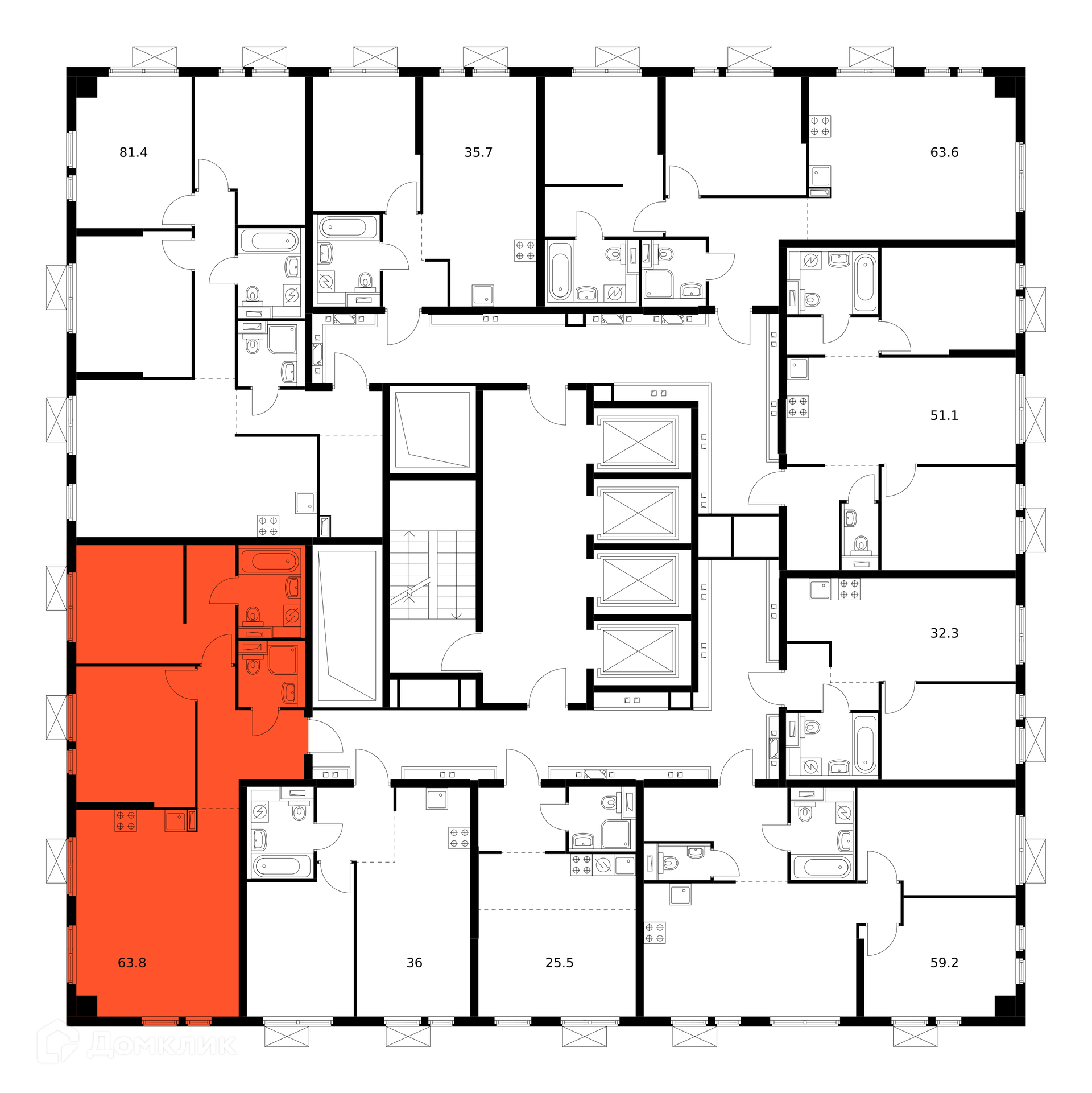 Площади квартир