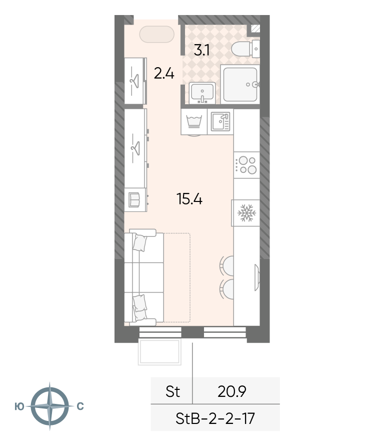 Планировка 1 комн. в ЖК "Лучи"