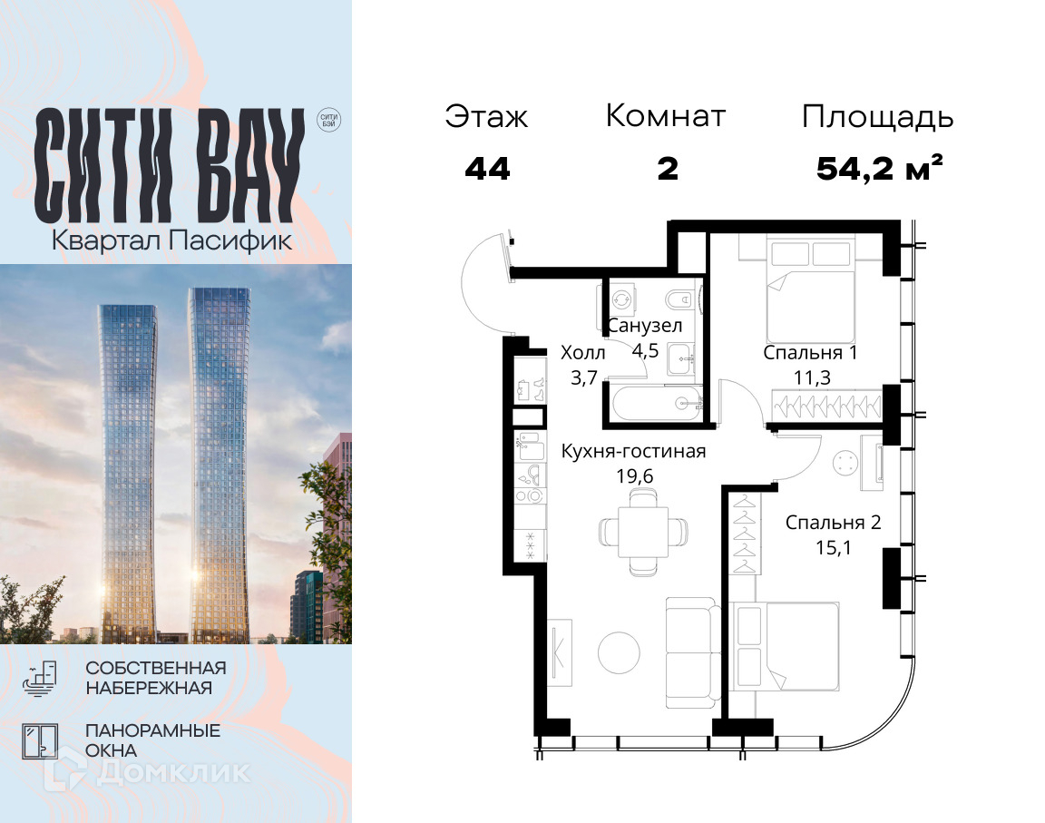 Доступна к покупке 2-комнатная квартира в современном жилом комплексе "ЖК "City Bay (Сити Бэй)"" 🏢. Квартира расположена на 44-м этаже 52-этажного дома. Прекрасный выбор для инвестиций.