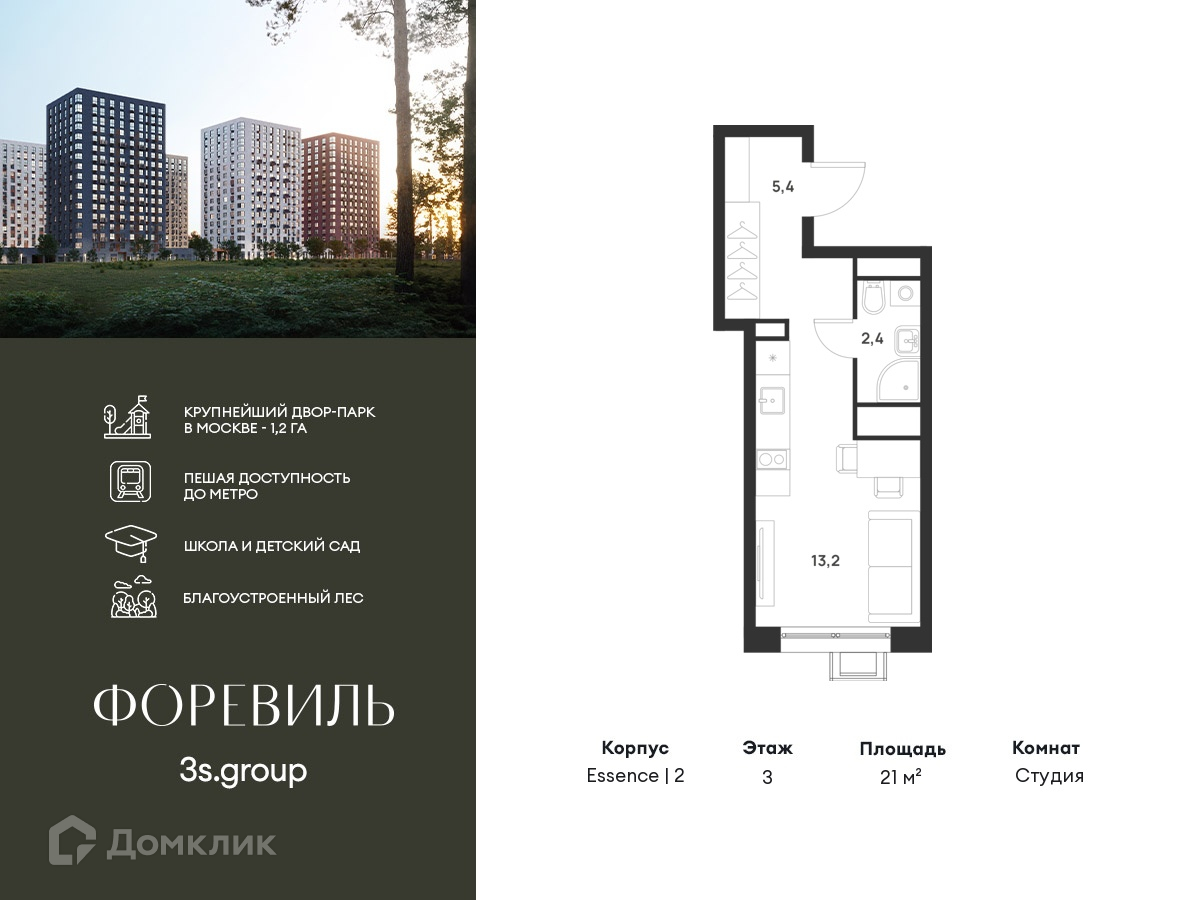 В продаже Студия в современном жилом комплексе "ЖК Foreville (Форэвилль)" 🏢. Квартира расположена на 3-м этаже 17-этажного дома. Отличный вариант для инвестиций.