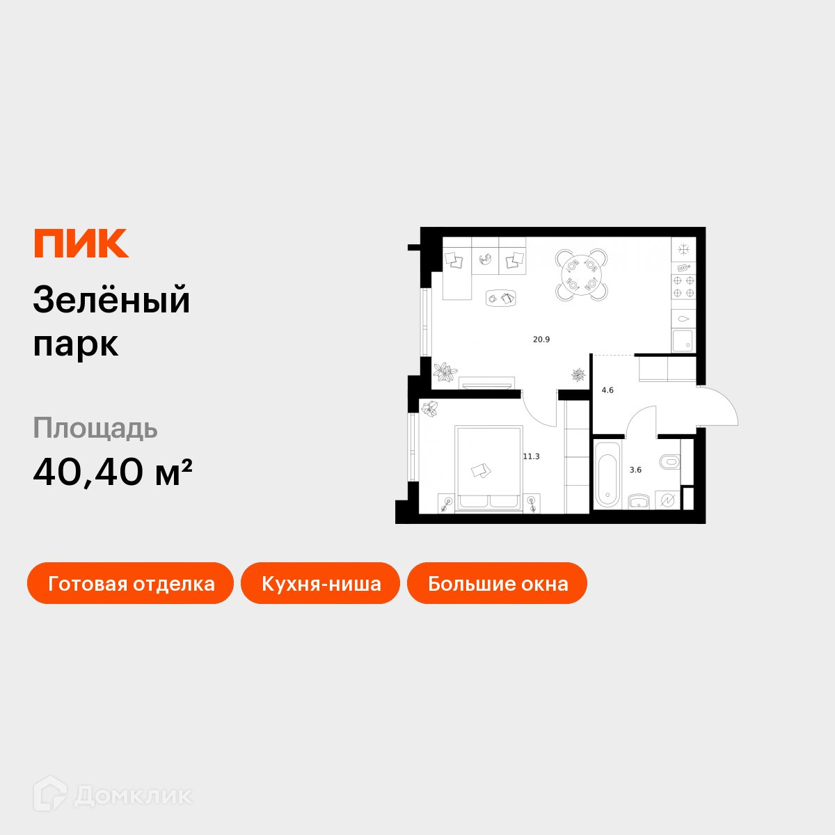 Продается 1-комнатная квартира в новом жилом комплексе "ЖК Зелёный парк" 🏢. Квартира расположена на 6-м этаже 26-этажного дома. Отличный вариант для комфортной жизни.