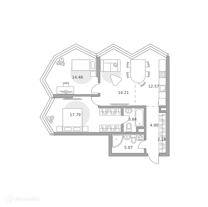 - ✅ Кухня: 12.57 м² — идеальна для семейных ужинов.