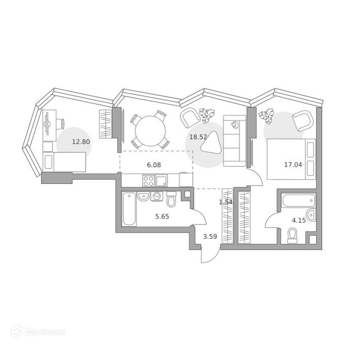 - ✅ Кухня: 6.08 м² — место для кулинарных шедевров.