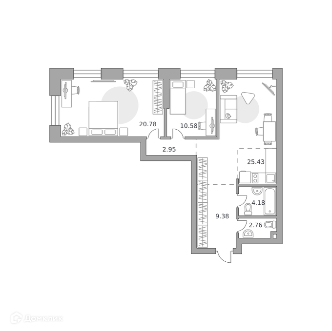 - ✅ Кухня: 25.43 м² — идеальна для семейных ужинов.