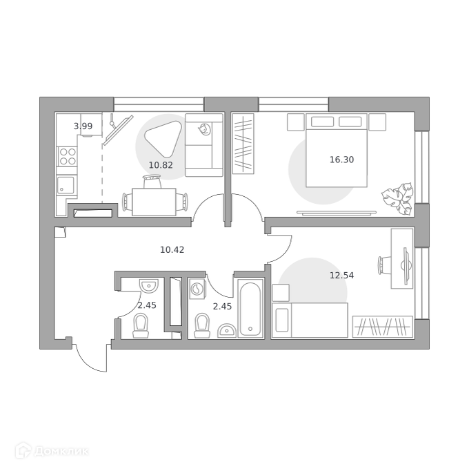 Планировка 2 комн. в ЖК Тринити