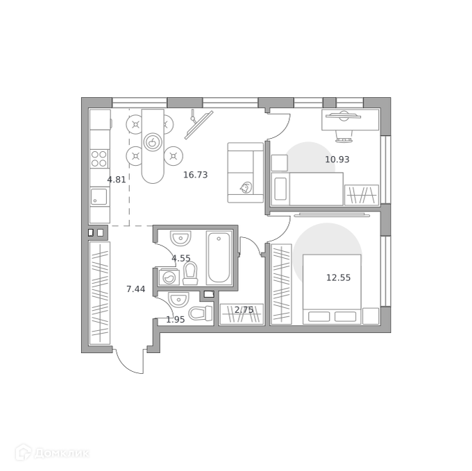 - ✅ Кухня: 4.81 м² — идеальна для семейных ужинов.