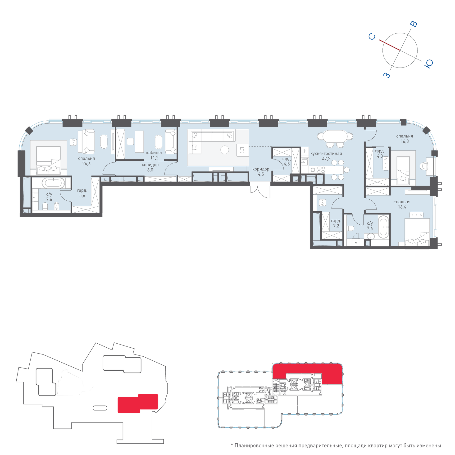 - Количество комнат: 4-комнатная квартира