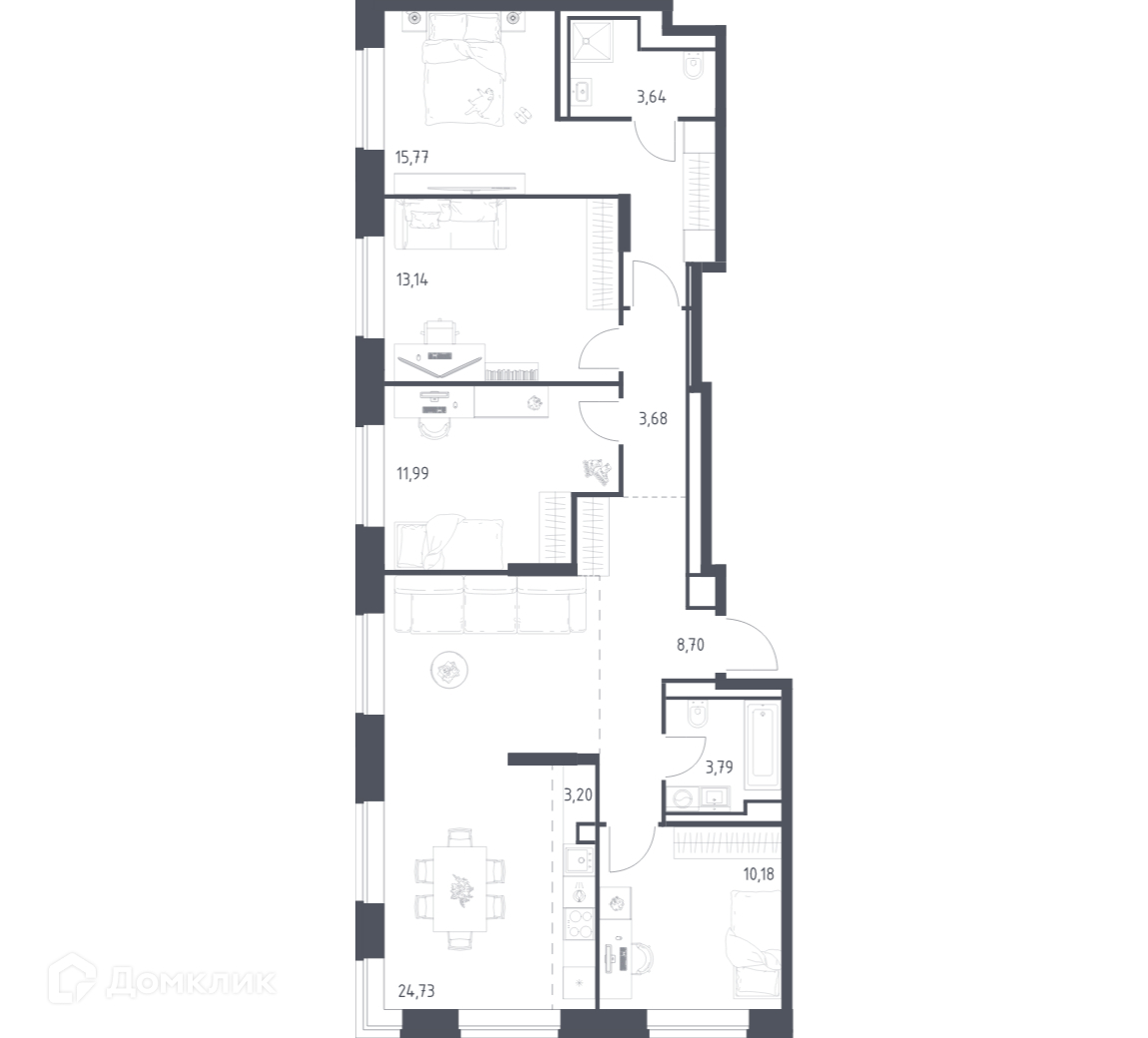 В продаже 4-комнатная квартира в современном жилом комплексе "ЖК Верейская 41" 🏢. Квартира расположена на -м этаже 15-этажного дома. Прекрасный выбор для семьи.