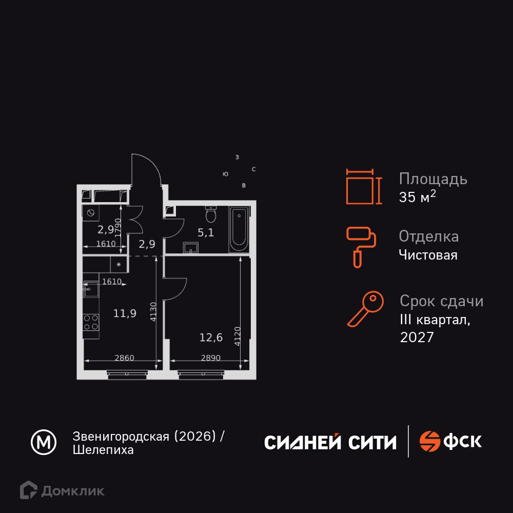 Продается 1-комнатная квартира в новом жилом комплексе "ЖК "Sydney City (Сидней Сити)"" 🏢. Квартира расположена на 3-м этаже 45-этажного дома. Прекрасный выбор для инвестиций.