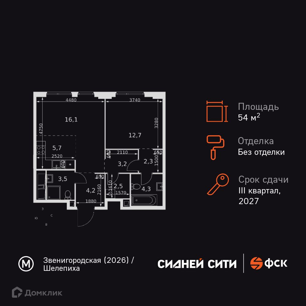 В продаже 2-комнатная квартира в новом жилом комплексе "ЖК "Sydney City (Сидней Сити)"" 🏢. Квартира расположена на -м этаже 45-этажного дома. Прекрасный выбор для инвестиций.