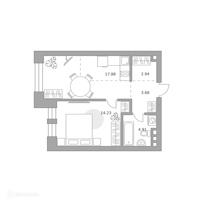 - Жилая площадь: 14.23 м²