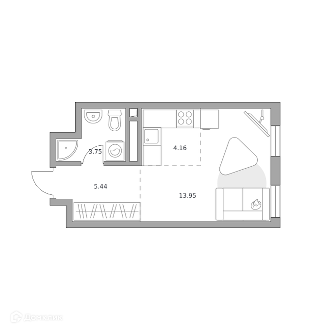 - Жилая площадь: 13.95 м²