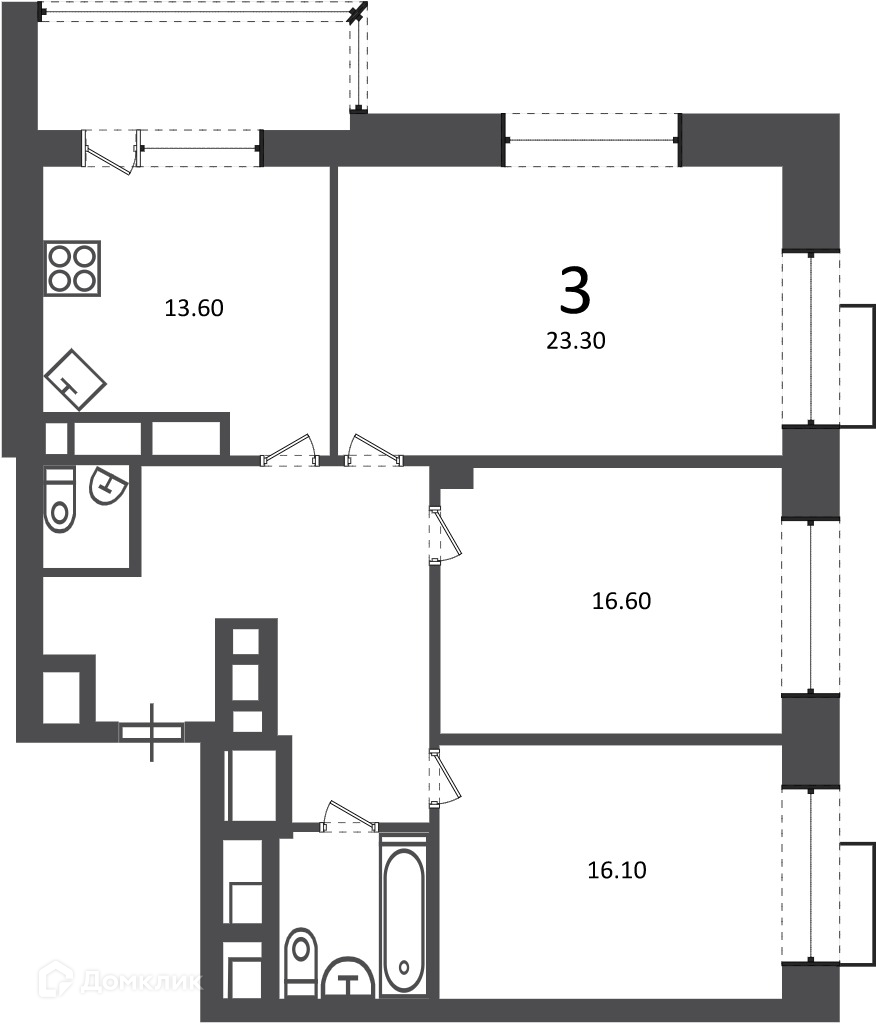 - Количество комнат: 3-комнатная квартира