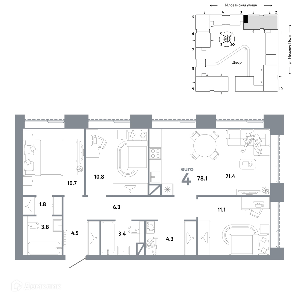 Доступна к покупке 4-комнатная квартира в современном жилом комплексе "ЖК СТРАНА.ЗАРЕЧНАЯ" 🏢. Квартира расположена на 15-м этаже 39-этажного дома. Прекрасный выбор для семьи.