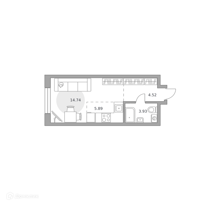 - Жилая площадь: 14.74 м²