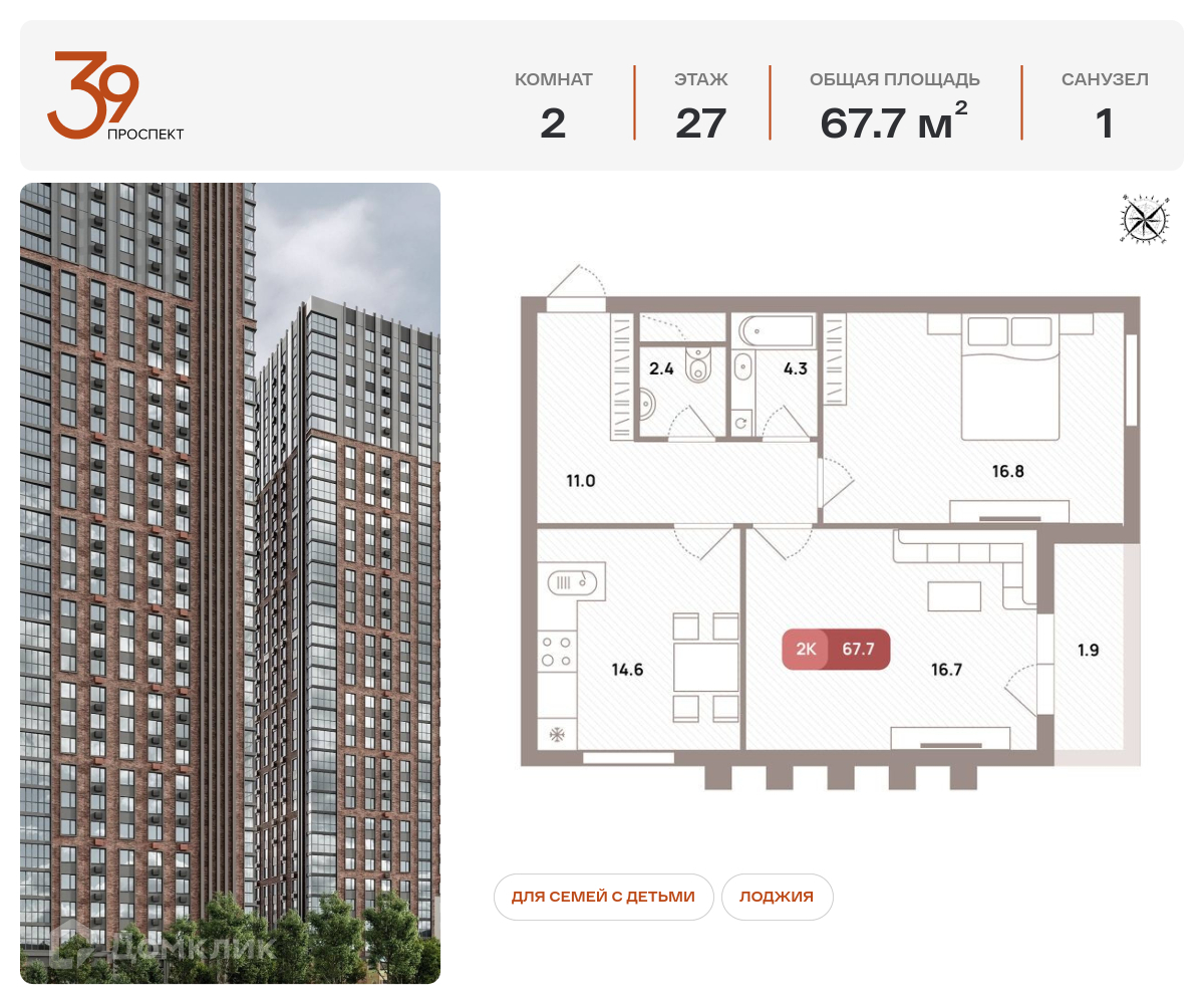 Предлагается 2-комнатная квартира в новом жилом комплексе "ЖК ПРОСПЕКТ 39" 🏢. Квартира расположена на 28-м этаже 33-этажного дома. Прекрасный выбор для комфортной жизни.