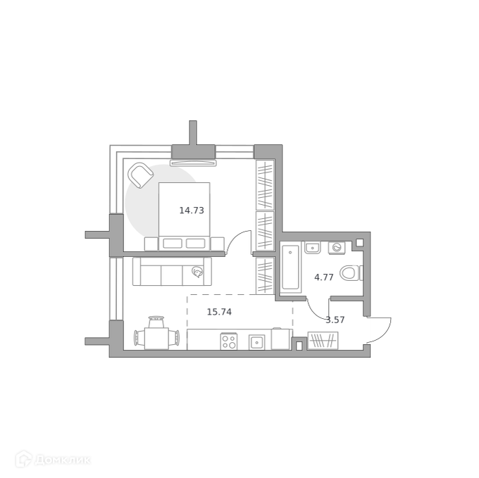 Планировка 1 комн. в ЖК MYPRIORITY Dubrovka (МАЙПРИОРИТИ Дубровка)