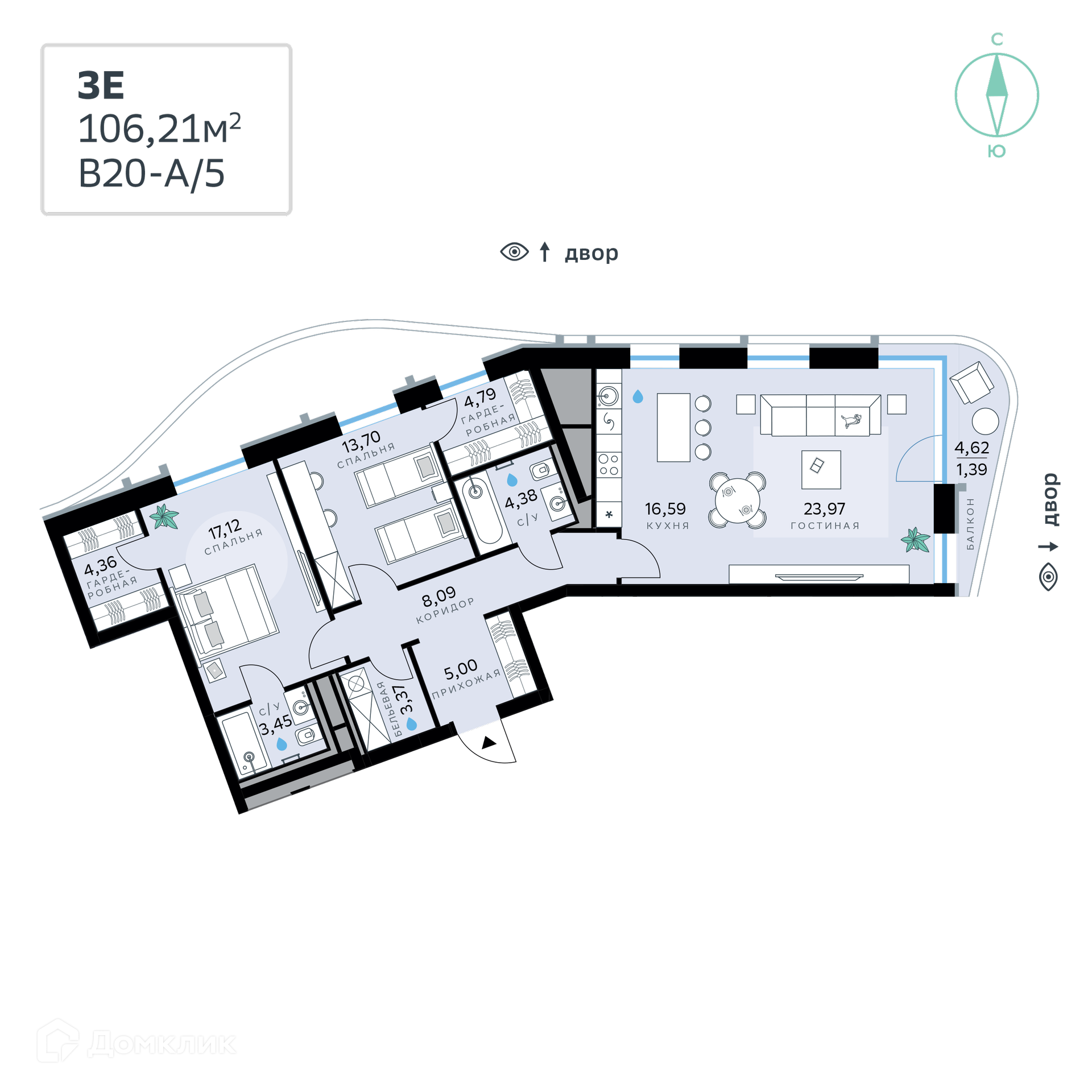- Общая площадь: 106.21 м²