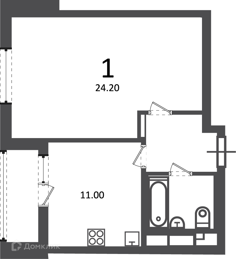 - Жилая площадь: 24.2 м²