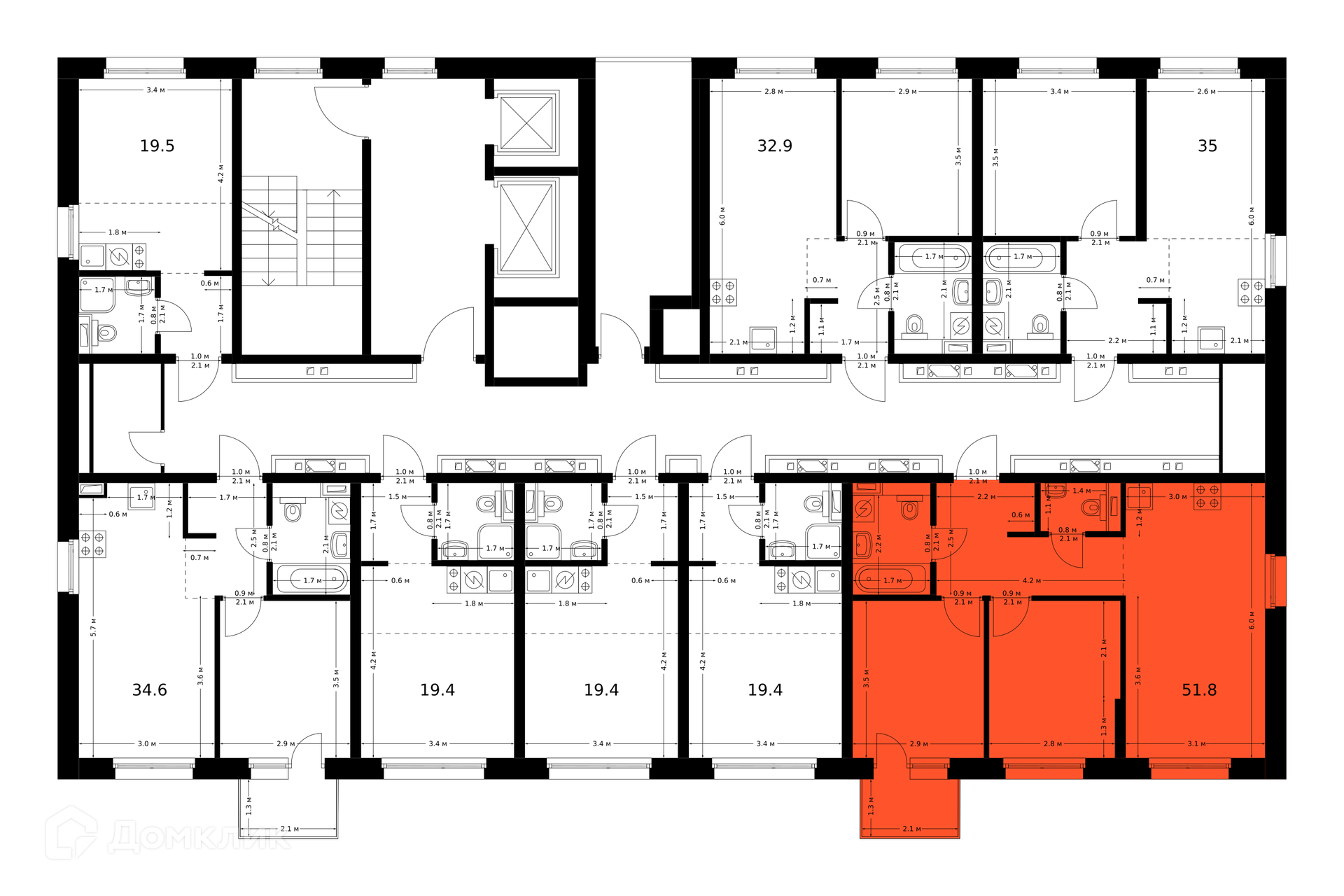 Площади квартир