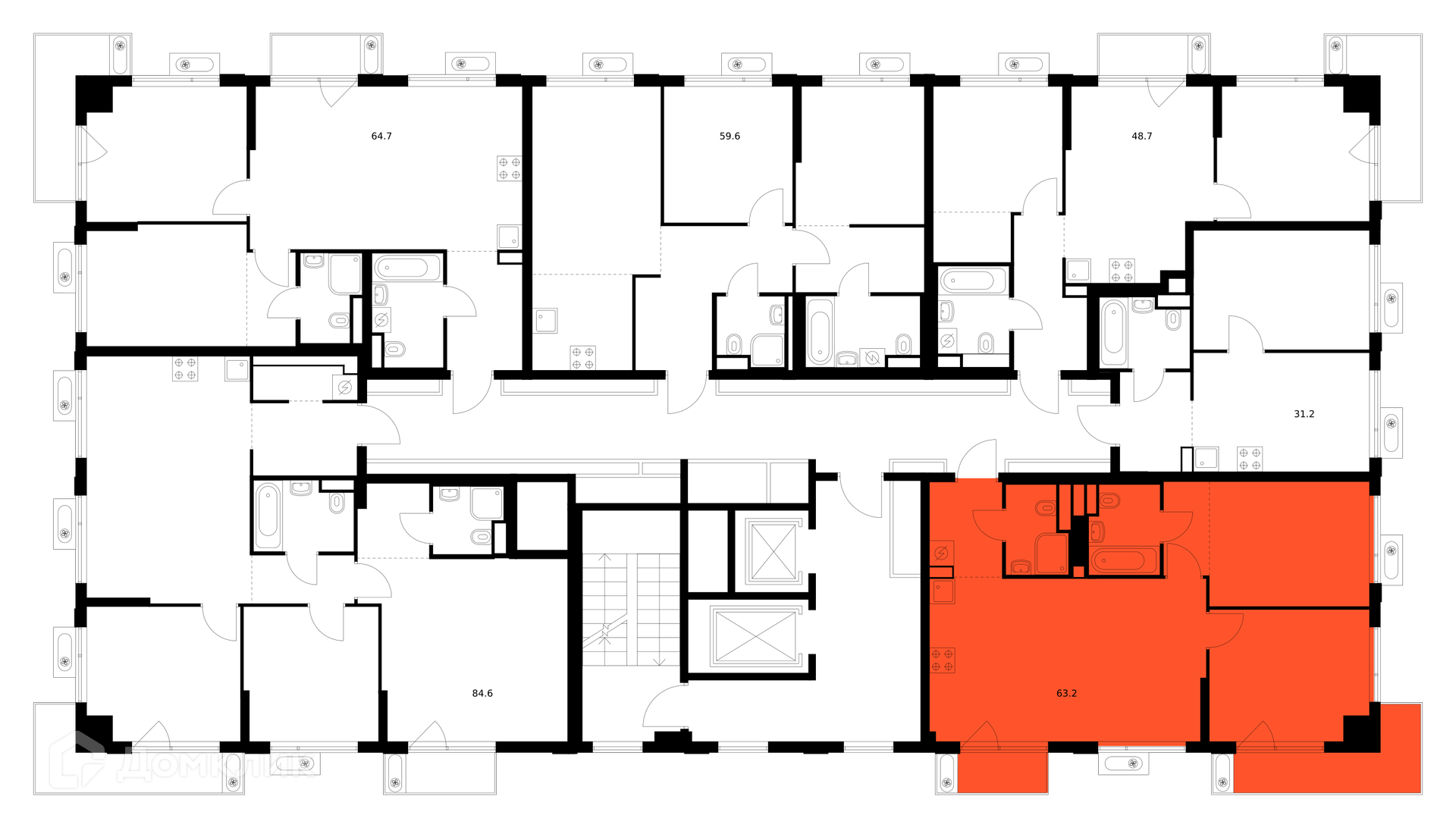 Площади квартир