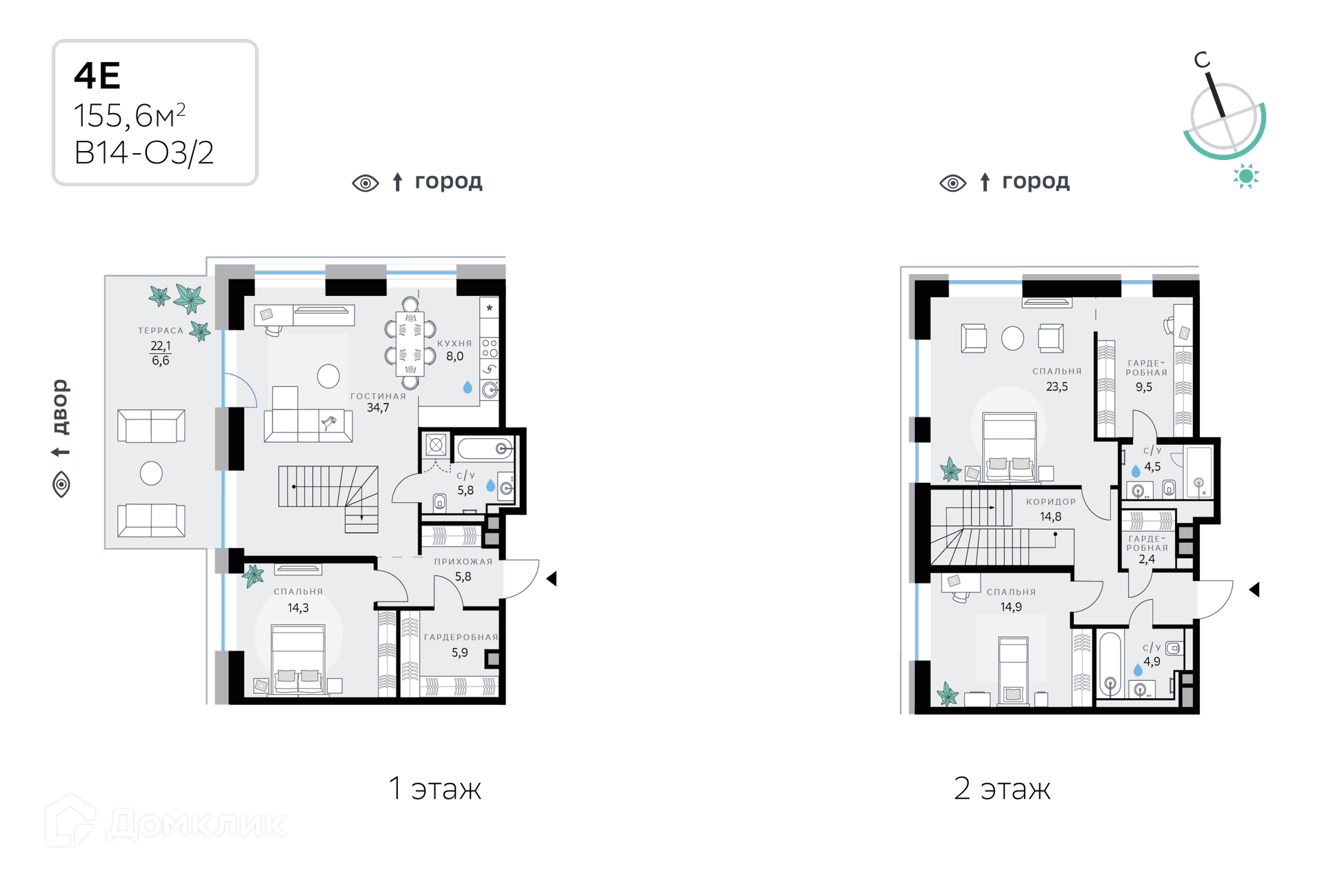 - Общая площадь: 155.6 м²