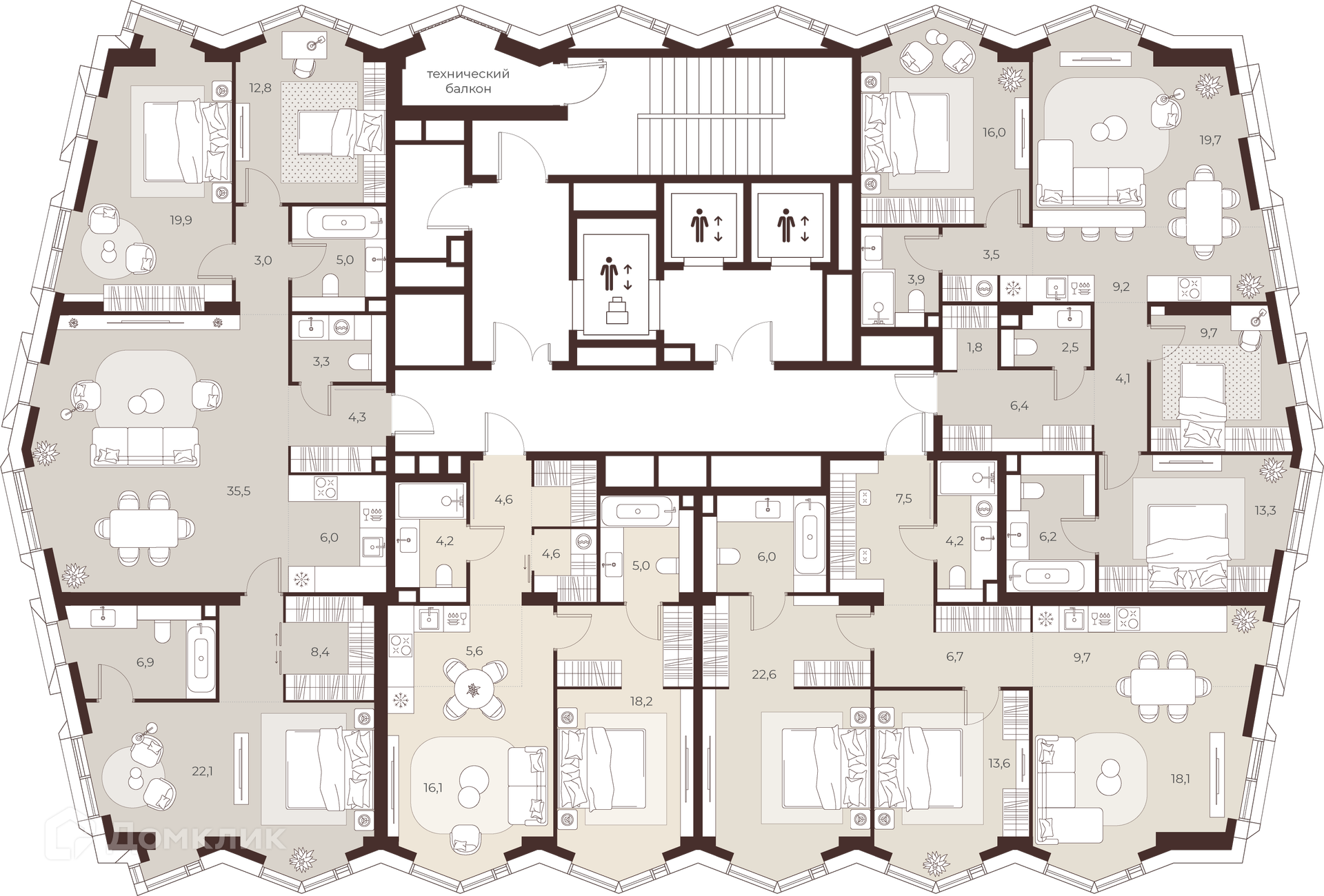 Площади квартир