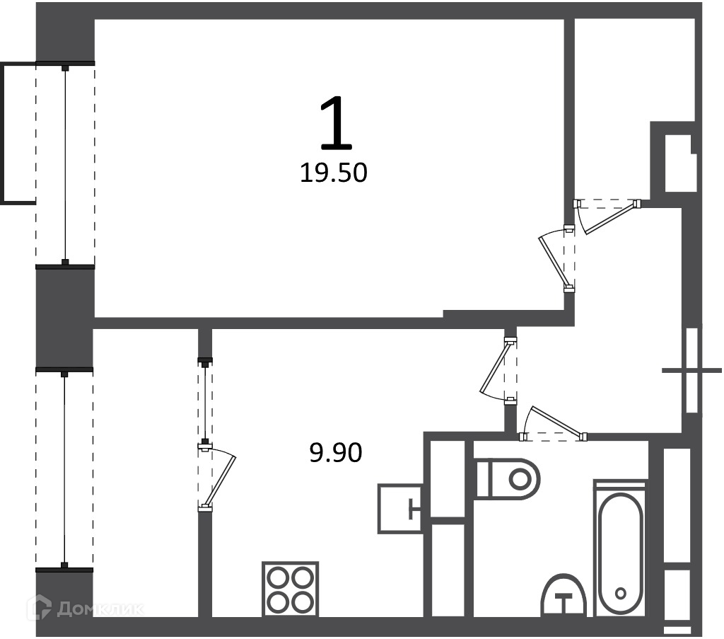 - ✅ Просторная жилая площадь: 19.5 м².