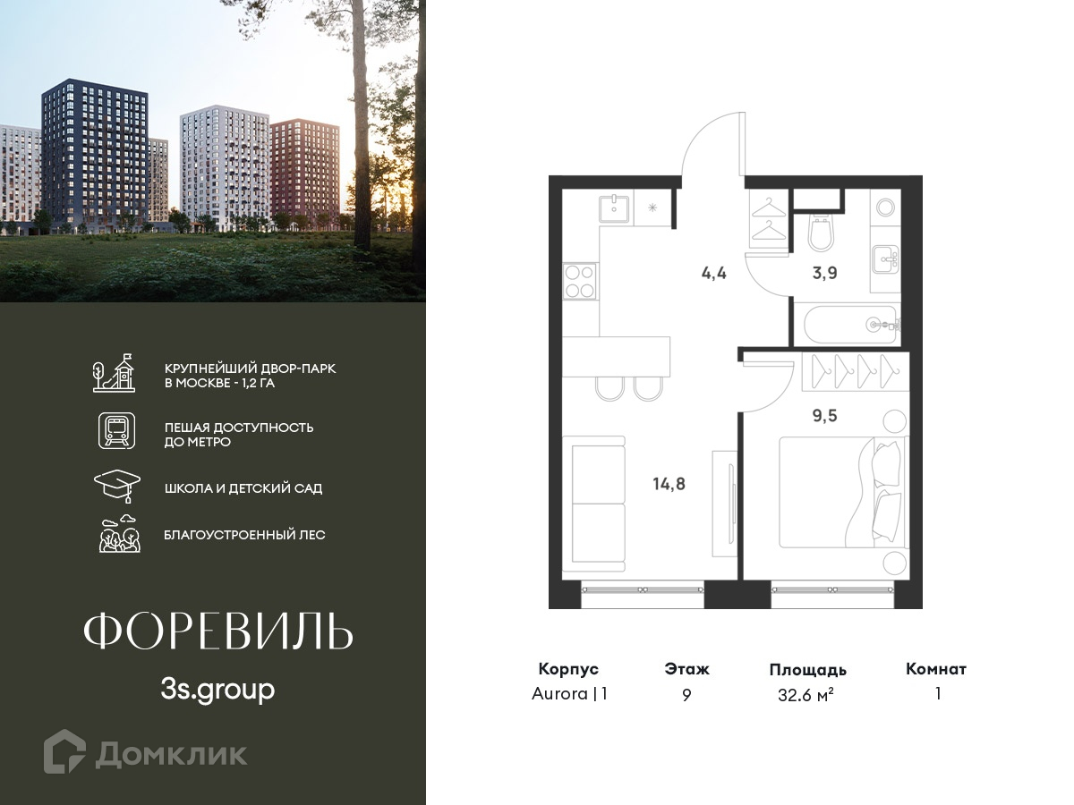 Комплекс располагает крупнейшим приватным двор-парком в Новой Москве площадью 1,2 Га, предлагая жителям огромное пространство для отдыха, спорта и игр на свежем воздухе. Природный ландшафт: Внутренний лесопарк с более чем 183 взрослыми деревьями и 10 320 цветущими кустарниками создает уникальную природную атмосферу для каждого времени года. Игровые и спортивные зоны: Обширные площадки с безопасным покрытием, специализированные зоны для детей разных возрастных групп и взрослых, включая воркаут и настольный теннис, способствуют активному и здоровому образу жизни. Экологичность и долговечность: Использование натуральных материалов, таких как лиственница, и крупноформатной бетонной плитки для покрытия, подчеркивает стремление проекта к экологичности и устойчивости. Безопасность и уединение: Внутренний двор без машин обеспечивает безопасность для детей и спокойствие для взрослых. Территория огорожена и находится под круглосуточным видеонаблюдением. Сохранение времени: Благодаря превосходной транспортной доступности и близости к новой станции метро Корниловская, Foreville позволяет жителям экономить время для семьи и отдыха на природе, минимизируя необходимость длительных поездок. Foreville не просто жилье, а целая экосистема для комфортной и гармоничной жизни на свежем воздухе, совмещая преимущества городской инфраструктуры и непосредственную близость к природе.