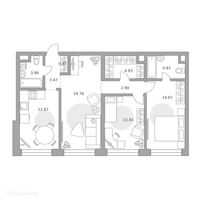 - ✅ Кухня: 12.87 м² — место для кулинарных шедевров.
