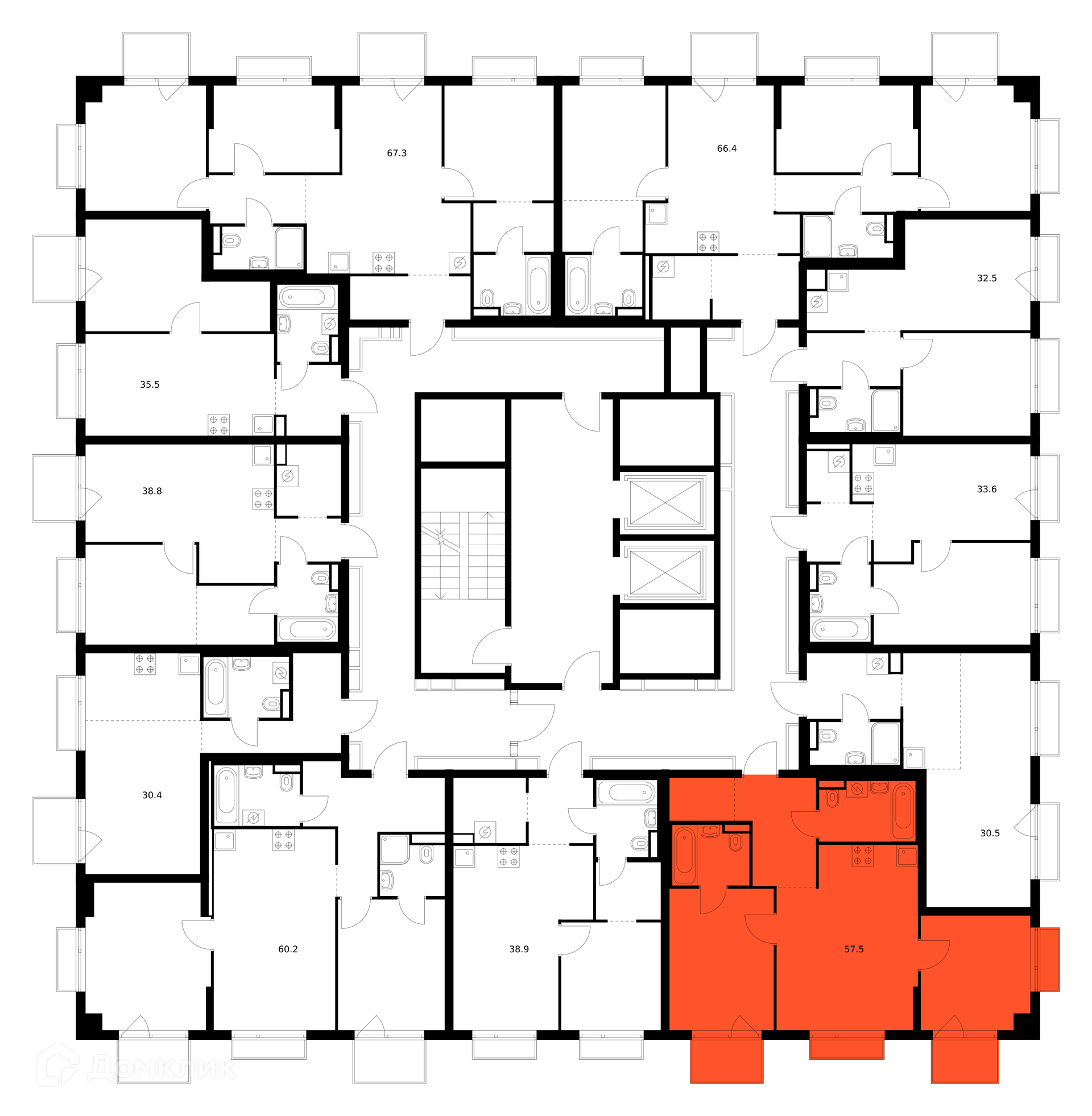 Площади квартир