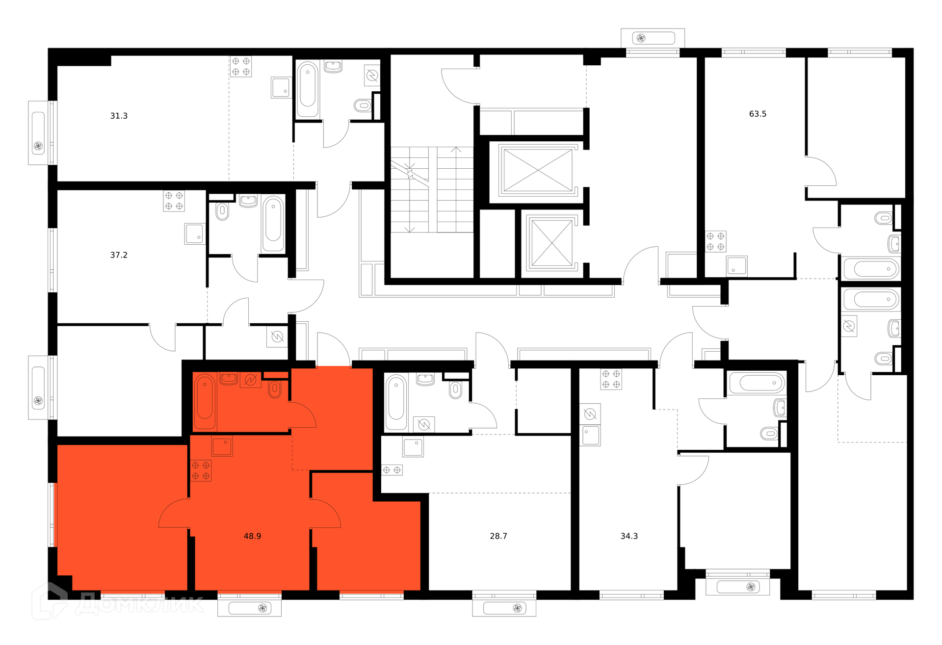 Площади квартир