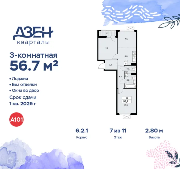 3 комн. квартира в Москве в ипотеку от 115 809 руб/месяц