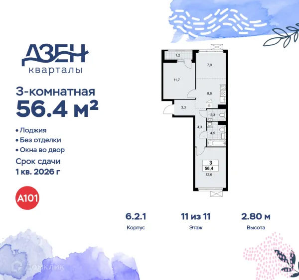 3 комн. квартира в Москве в ипотеку от 94 130 руб/месяц