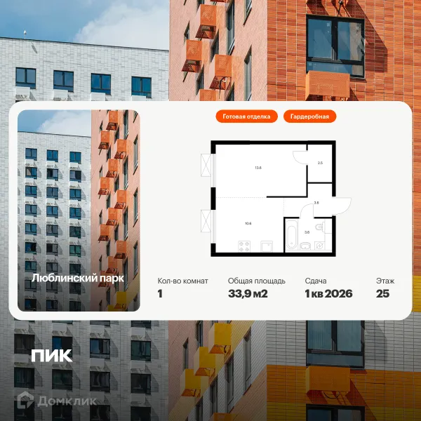 1 комн. квартира в Москве в ипотеку от 124 205 руб/месяц